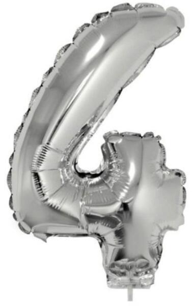 4 szám alakú fólia lufi, ezüst, 41,6 cm