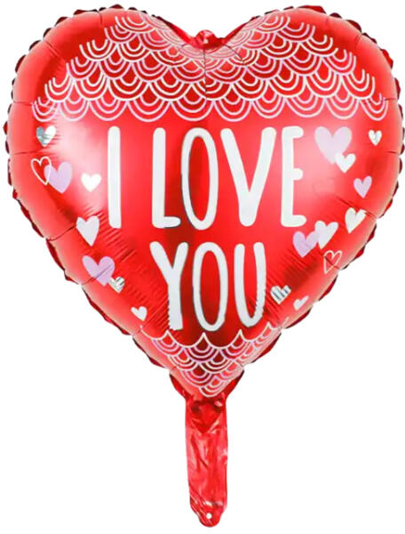 Fólia lufi, 18"/45 cm, szív forma, I Love You felirattal. Önzáró szelepes, tölthető levegővel vagy héliummal. Egyedi eurofüles csomagolásban.