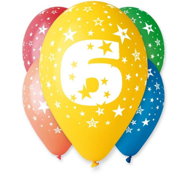 Happy Birthday 6 Star léggömb, lufi 5 db-os 12 inch (30cm) Anyaga: latex/gumi Mérete: 30 cm (12 inch) A lufi tartó pálca + csésze külön megvásárolható áruházunkban ( KFJ_DPA9911929vagyKFJ_DPA9917359 ).