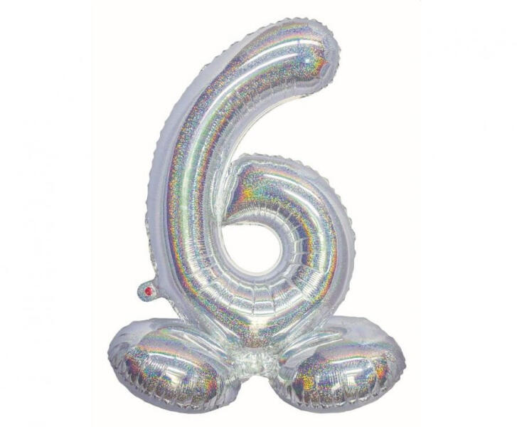Holographic Silver, Ezüst 6-os szám fólia lufi talppal 72 cm Fólia léggömb, mely héliummal vagy levegővel tölthető. A lufi önzárószeleppel van ellátva, amely megakadályozza a gáz elszökését. Anyaga: fólia Méret: 72 cm A lufi tartó pálca + csésze külön megvásárolható áruházunkban ( KFJ_DPA9911929vagyKFJ_DPA9917359 ).