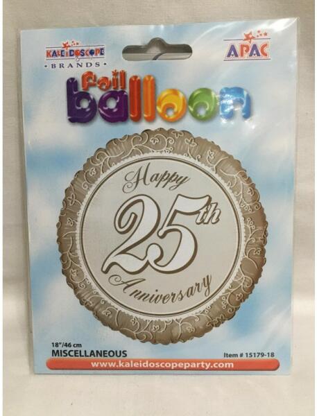 45 cm átmérőjű, ezüst színű, gömb alakú, héliummal tölthető, 25. évfordulós fólia lufi, önzáró szeleppel. FIGYELEM! A fólia léggömbök érzékenyek a szélsőséges hőmérséklet változásokra. Hidegben elernyedhetnek, melegebb helyen újra kifeszülhetnek, tágulhatnak, akár el is durranhatnak! A fólia léggömbök vezethetik az áramot!