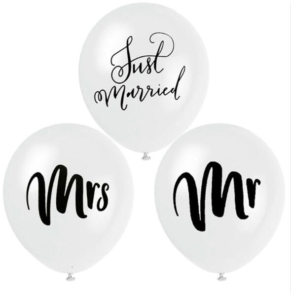 5 darabos 30 cm-es, fehér színű latex lufi szett vegyes esküvői mintával és felirattal, melynek segítségével igazán varázslatos dekorációt varázsolhatunk az esküvői partira. Tulajdonságok: Anyaga: latex A lufik méretei: 30 cm átmérő A csomagban 5 darab lufi található, a minták darabszámai vegyesen találhatók meg a csomagban. Könnyen felfújható. Levegővel tölthető.