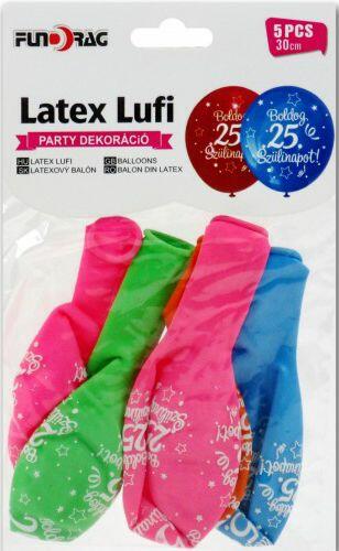 Lufi 25. Boldog Szülinapot 5db 30cm 613318 Befoglaló méretek 13x1x21 cmAnyaga latex