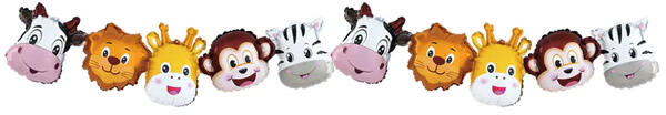 Állatos lufi koszorú, állat fej alakú lufikat tartalmaz. Hossza: 206 cm. Szélessége: 34 cm Csak levegővel tölthető