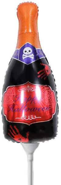 Fólia lufi, mini forma, halloween pezsgős üveg, kb. 30-35cm. Önzáró szeleppel, csak levegővel tölthető. Ömlesztett formában, nincs egyesével csomagolva.