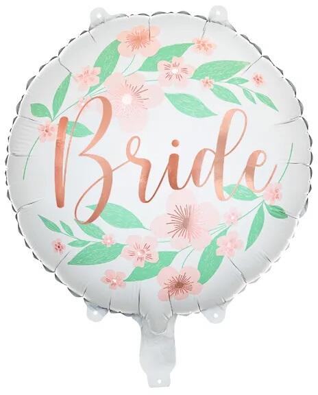Fólia lufi- Flower bride 45 cm, fehér Fólia lufik egyedi és esztétikus kiegészítői minden partynak vagy társasági eseménynek . Készítsen tematikus lufi díszítéstleánybúcsúra és varázsoljon felejthetetlen pillanatokat. mennyiség : 1 db szín : fehér, Bride - arany felirat méret : 45 cm alkalmas levegővel illetve héliummal torténő felfújásra