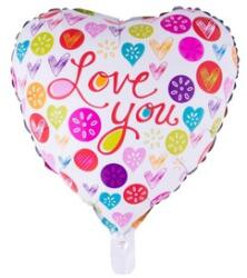 Szívecske formájú mintás lufi, nem csak Valentin napra! A Love You fólia lufi egy fehér, színes mintával készült léggömb, erős alumínium fóliából. A lufi héliummal van töltve, Love You felirattal van díszítve, és bármilyen alkalomra odaadhatod a szerelmednek. A Love You fólia lufi mérete: 46 cm.