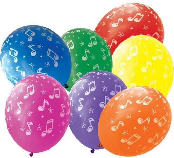 Léggömbök színes jegyzetmotívummal. 7 db csomagban.