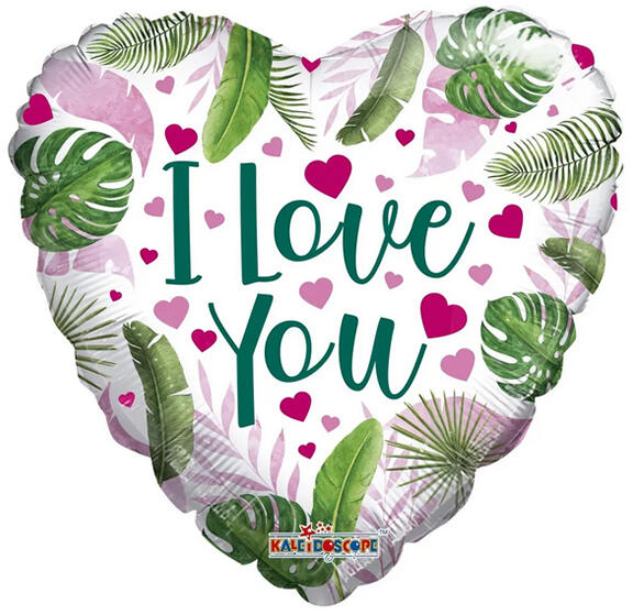 Fólia lufi, 18"/45cm. Újrahasznosított műanyagból készül, célunk az újrahasznosított műanyag százalékos arányának 95% -ra történő növelése! Szív alakú, szivecskés mintákkal, I Love you. Héliummal vagy levegővel fújható, önzáró szelepes. Egyesével csomagolva.
