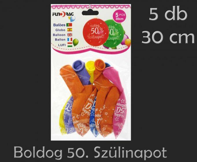 Lufi Boldog 50. Szülinapot színes 5db 30cm 21048 Lufi Boldog 50. Szülinapot színes 5db 30cmBefoglaló méretek 13x1x21 cmAnyaga gumi