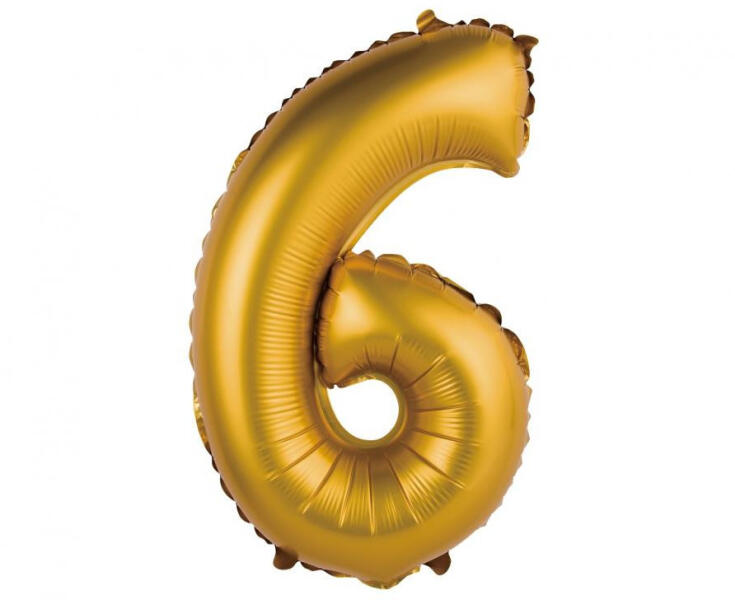 Gold Matt, Arany 6-os mini szám fólia lufi 35 cm A léggömb csak levegővel történő feltöltésre alkalmas, hegesztést igényel. A lufi tartó pálca + csésze külön megvásárolható áruházunkban. Anyaga: fólia Méret: 35 cm