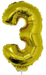 Dobd fel a születésnapi bulit aranyszínű számos lufival! Az aranyszínű 3 Számos lufi egy csillogó 3-as szám, amivel ki tudod írni a születésnapos elért életkorát a bulin. A lufi fóliából készült, és akár levegővel, vagy héliummal is fel lehet tölteni. Az arany színű 3-as Számos lufi felfújt mérete: 42 cm.