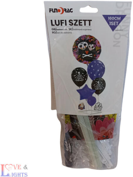 Halloweeni party dekoráció - látványos lufi állvány - 8 tészes Lufi szett - 8 részes Felfújható : levegővel vagy héliummal Mérete összeállítás után: kb 160 cm * 30* 30 cm Műanyag keretre erősíthető lufik és papírdekorációk