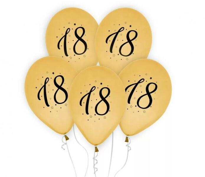 Happy Birthday 18 léggömb, lufi 5 db-os 12 inch (30cm) Anyaga: latex/gumi Mérete: 30 cm (12 inch) A lufi tartó pálca + csésze külön megvásárolható áruházunkban (DPA9911929).