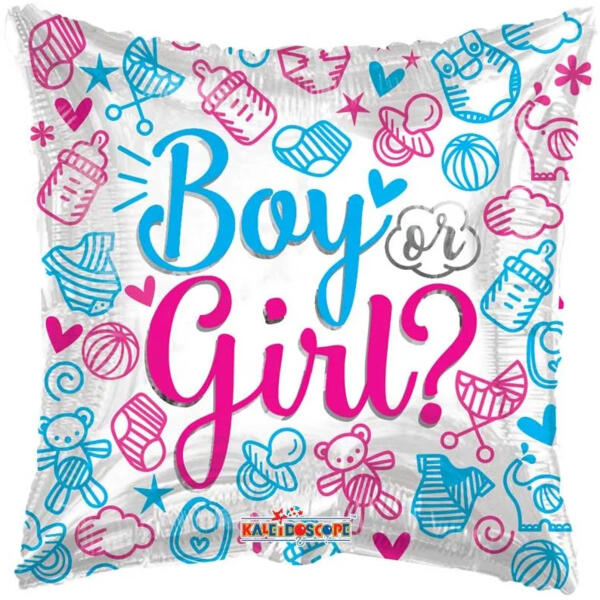 Boy or Girl? feliraítú, párna alakú babaváró fólia léggömb. Levegővel és héliummal egyaránt fújható, önzáró szeleppel. 45 cm nagy. Eu füles egyedi csomagolásban.