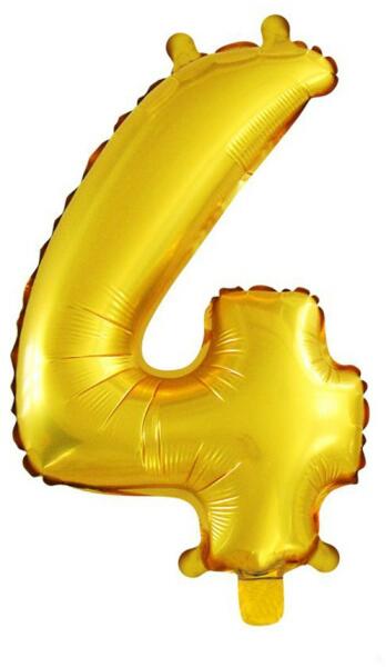 Arany színű, szám alakú fólia lufi „4 számmal, melyet használhatsz születésnapra, névnapra, vagy akár egy céges partykra is használhatod dekorációként. Tulajdonságok: Anyaga: fólia A lufi mérete: a második képen láthatóak A lufi levegővel és héliummal is felfújható. A csomagban található kétoldalas ragasztó a rögzítéshez, illetve egy műanyag cső a lufik felf