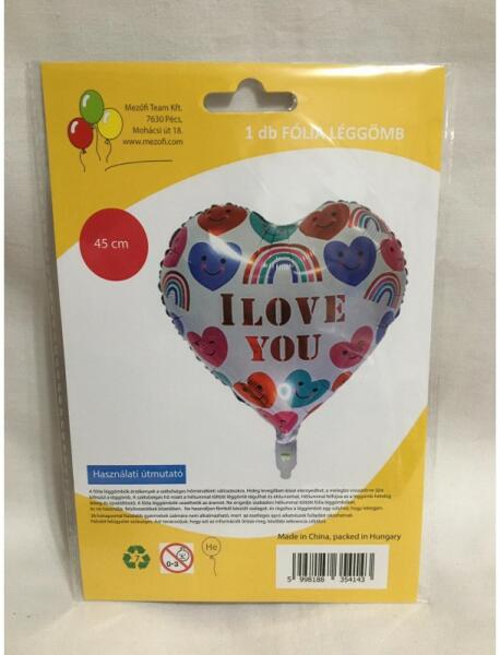 45 cm-es, szív alakú, héliummal és levegővel is tölthető, Valentin napi fólia lufi, I love you felirattal, önzáró szeleppel. FIGYELEM! A fólia léggömbök érzékenyek a szélsőséges hőmérséklet változásokra. Hidegben elernyedhetnek, melegebb helyen újra kifeszülhetnek, tágulhatnak, akár el is durranhatnak! A fólia léggömbök vezethetik az áramot!