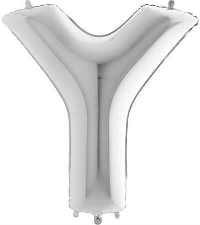 Ezüst lufi Y betű. A lufi tömör fóliából készült.