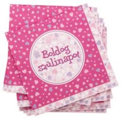 Dobd fel a szülinapi terítéket rózsaszín szalvétákkal! A pink Szülinapi szalvéta 16 darabos készlet Boldog szülinapot felirattal készült, szívecskés mintájú papírszalvétákat tartalmaz, amik látványosabbá teszik az asztalt a szülinapi zsúron. A szalvéták dekoratívak, minden lányos születésnapra érdemes felhasználni. A szalvéták méretei: 33 x 33 cm.