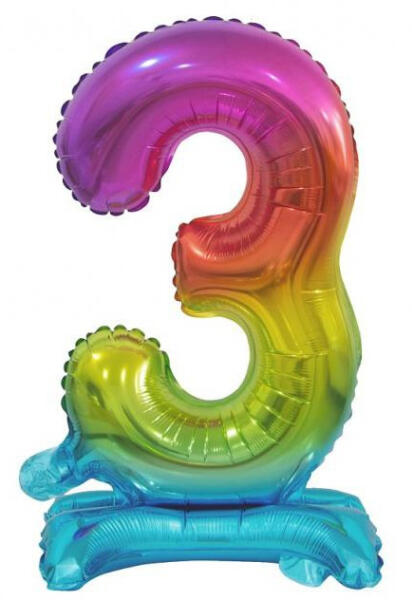 Rainbow, Színes mini 3-as szám fólia lufi talppal 38 cm Fólia léggömb, mely héliummal vagy levegővel tölthető. A lufi önzárószeleppel van ellátva, amely megakadályozza a gáz elszökését. Anyaga: fólia Méret: 38 cm A lufi tartó pálca + csésze külön megvásárolható áruházunkban ( KFJ_DPA9911929vagyKFJ_DPA9917359 ).