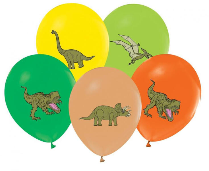 Dinosaurs, Dinoszaurusz léggömb, lufi 5 db-os 12 inch (30 cm) Anyaga: latex/gumi Mérete: 30 cm (12 inch) A lufi tartó pálca + csésze külön megvásárolható áruházunkban ( KFJ_DPA9911929vagyKFJ_DPA9917359 ).