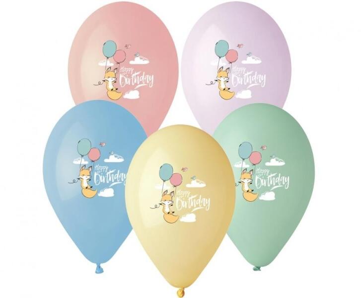 Happy Birthday Fox, Róka léggömb, lufi 5 db-os Anyaga: latex/gumi Mérete: 13 inch (33 cm) A lufi tartó pálca + csésze külön megvásárolható áruházunkban (DPA9911929).