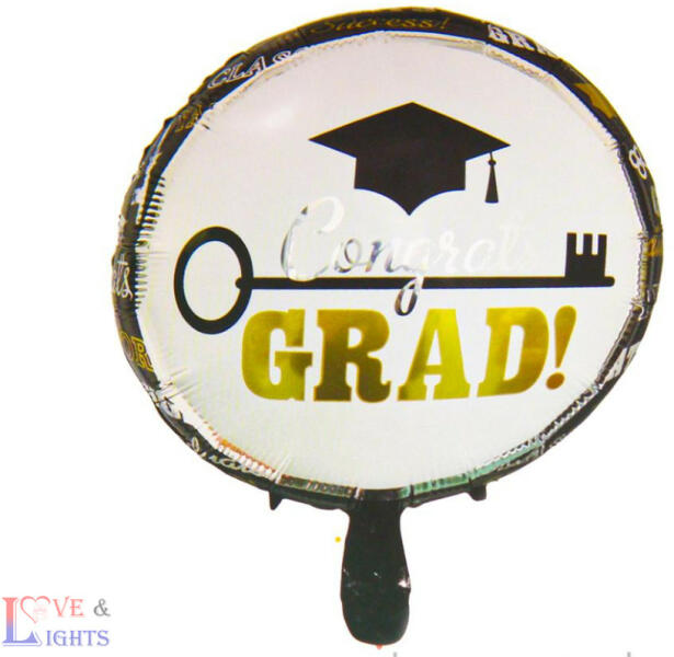 Kör alakú gratulálunk angol feliratos ballagási fólia lufi Felfújható : levegővel vagy héliummal Mérete: 45 cm ámtmérő