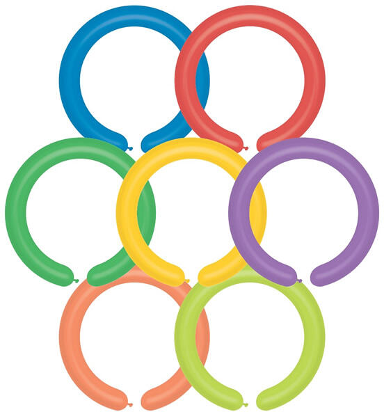 Cső alakú lufi, formázható, több színben, 100 darab/csomag. Felfújt állapotban szélessége 5 cm, hossza: 110 cm.
