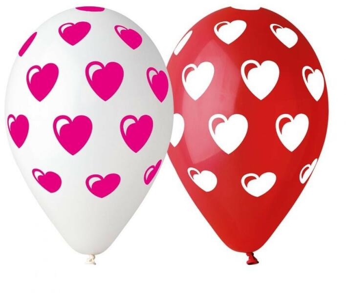 Red-White Heart, Szív léggömb, lufi 5 db-os Anyaga: latex/gumi Mérete: 12 inch (30 cm) A lufi tartó pálca + csésze külön megvásárolható áruházunkban (DPA9911929).