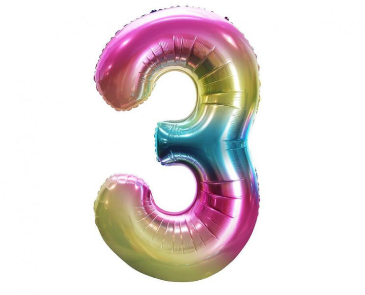 Rainbow, Szivárvány 3-as szám fólia lufi 85 cm Fólia léggömb, mely héliummal vagy levegővel tölthető. A lufi önzárószeleppel van ellátva, amely megakadályozza a gáz elszökését. Méret: 85 cm Anyaga: fólia A lufi tartó pálca + csésze külön megvásárolható áruházunkban.
