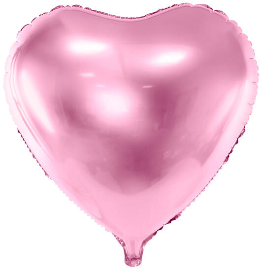 Fólia lufi, szív alak. Színe: világos pink. Mértet: 45 cm. Önzáró szeleppel ellátva, tölthető levegővel vagy héliummal. Egyesével csomagolva.
