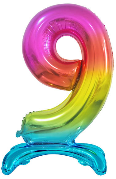 Fólia lufi, szivárvány színben. 74 cm magas, kizárólag levegővel tölthető, a talpa miatt biztonságosan megáll az asztalon vagy a földön is.