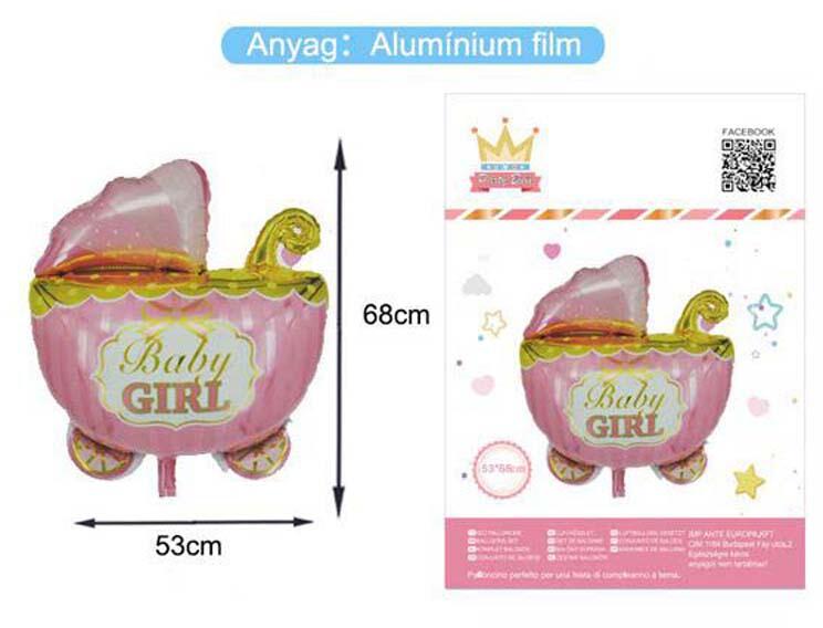 Fólia lufi - babakocsi rózsaszín 53x68cm Termékjellemzők: Anyaga: fólia Alkalom: Babaváró buli Figyelmeztetés: Figyelmeztetés: 8 év alatti gyerekek esetén fulladásveszélyes a felfújatlan lufi. ; 3 éves kor alatt nem ajánlott!; Figyelmeztetés: fulladásveszély, kis alkatrészek! Kinek ajánlott: Kislányoknak