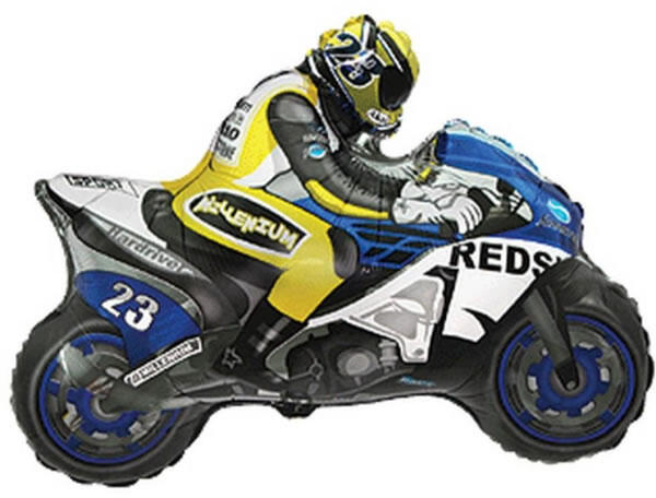 Versenymotor, kék, kb. 84 cm, fólia lufi. (84*70 cm)Héliummal fújható, önzáró szeleppel.