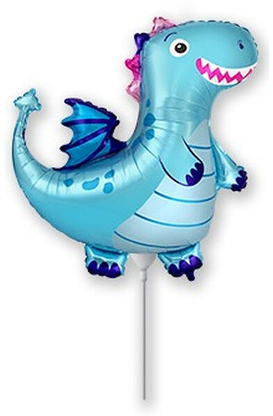 Kék sárkány pálcás fólia lufi, mini forma, kb 44 cm. Önzáró szelep nélkül, csak levegővel tölthető. Ömlesztett formában, nincs egyesével csomagolva.