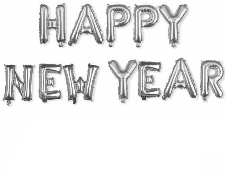 Ezüst színű Happy New Year feliratú fólia betű lufik , mellyel igazán ünnepi dekorációt tudsz varázsolni az újévi bulik alkalmával. Tulajdonságok: Anyaga: fólia A fólia felírat mérete: 40 cm magasság A betűket külön-külön kell felfújni. A lufikat csak LEVEGŐVEL lehet felfújni. A csomagban található egy műanyag cső a lufi felfújásához.