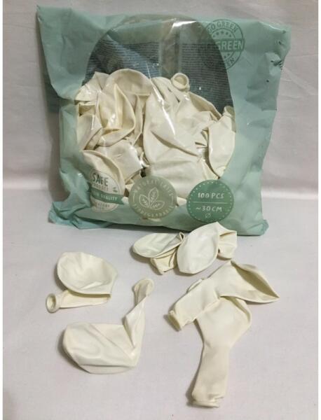 Fehér színű, héliummal és levegővel is tölthető, latex lufi. A léggömbök mérete felfújt állapotban 30 cm átmérőjű. Az ár 1 db lufira vonatkozik! A léggömbök alapanyaga 100% latex. A latex léggömbök környezetbarátak, lebomlási idejük egyenlő egy tölgyfalevél lebomlási idejével.