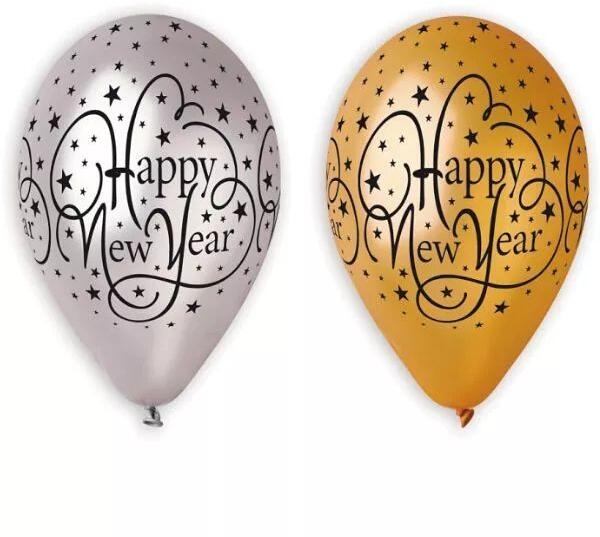 Happy New Year feliratos lufi csomag arany és ezüst színekben. Tökéletes választás az otthoni bulihoz, barátokhoz, céges évzáróhoz új év köszöntő dekorációnak. A csomag 6 darab lufit tartalmaz. Levegővel és héliummal egyaránt felfújható. A lufi felfújt mérete: 30 cm