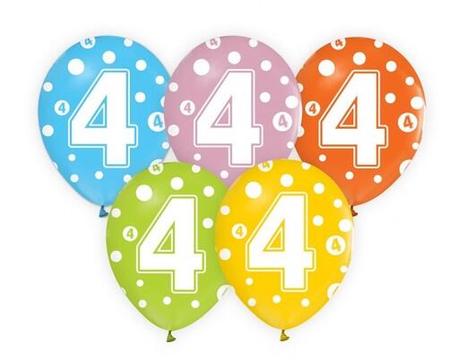 Mindegy, hogy 4 vagy 44 éves szülinaposról, esetleg évfordulóról van-e szó, ez a színes, fehér pöttyökkel és 4-es számmal dekorált luficsomag garantáltan feldobja majd az ünnepeltet vagy ünnepelteket. A szett 5 db lufit tartalmaz. Tökéletes választás a szülinapi zsúrra. A lufik felfújt mérete: 30 cm