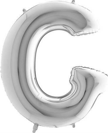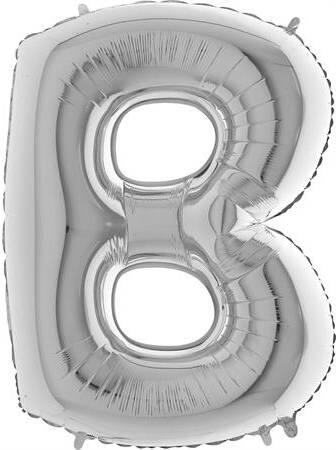 Ezüst lufi B betű. A lufi tömör fóliából készült.