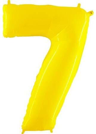 7-es számú sárga léggömb. A lufi erős fóliából készült.