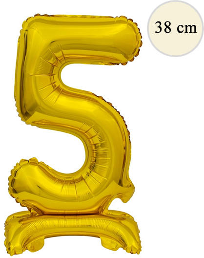 Fólia lufi, arany színben. 38 cm magas, kizárólag levegővel tölthető, a talpa miatt biztonságosan megáll az asztalon vagy a földön is.