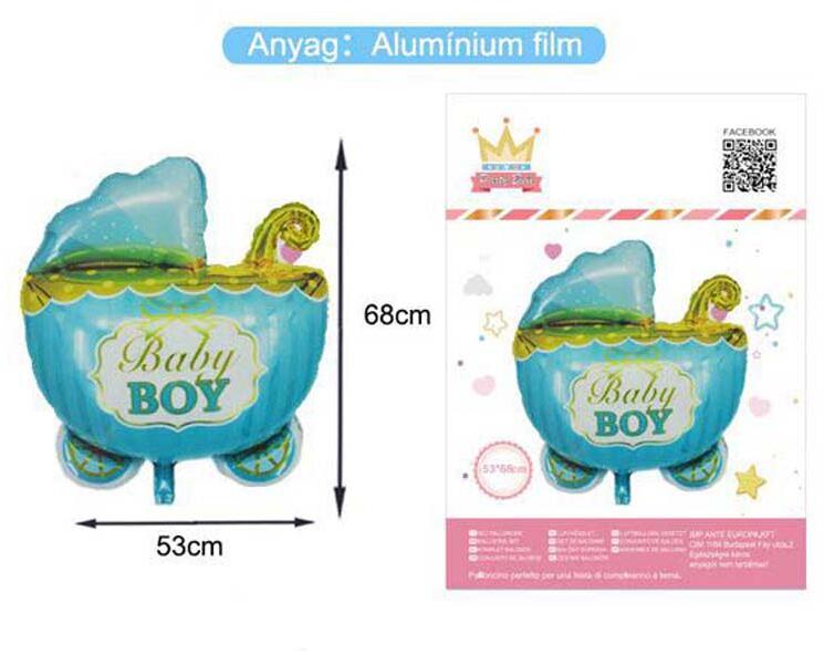 Fólia lufi - babakocsi kék 53x68cm Termékjellemzők: Anyaga: fólia Alkalom: Babaváró buli Figyelmeztetés: Figyelmeztetés: 8 év alatti gyerekek esetén fulladásveszélyes a felfújatlan lufi. ; 3 éves kor alatt nem ajánlott!; Figyelmeztetés: fulladásveszély, kis alkatrészek! Kinek ajánlott: Kisfiúknak