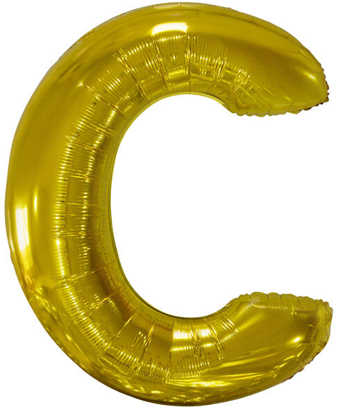 Fólia léggömb, 'C' betű, levegővel vagy héliummal tölthető, önzáró szelepes, egyesével csomagolva. A rajta lévő fülecskék segítségével is rögzíthetőek. Magassága: 86 cm. Színe: arany.