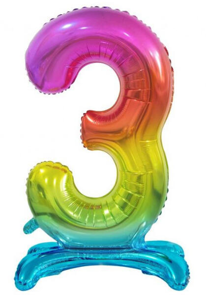 Rainbow, Színes 3-as szám fólia lufi talppal 74 cm Fólia léggömb, mely héliummal vagy levegővel tölthető. A lufi önzárószeleppel van ellátva, amely megakadályozza a gáz elszökését. Anyaga: fólia Méret: 74 cm A lufi tartó pálca + csésze külön megvásárolható áruházunkban ( KFJ_DPA9911929vagyKFJ_DPA9917359 ).