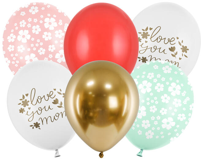 Latex lufik - Love you Mom mix Latex lufik egyedi és esztétikus kiegészítője minden pártynak vagy társadalmi eseménynek . Készítsen lufi díszítést a legkisebb számára a szülinap napján és varázsoljon egy feledhetetlen napot az ünnepeltnek és vendégeinek. alkalmas héliummal és levegővel való felfújásra darab : 6 drb