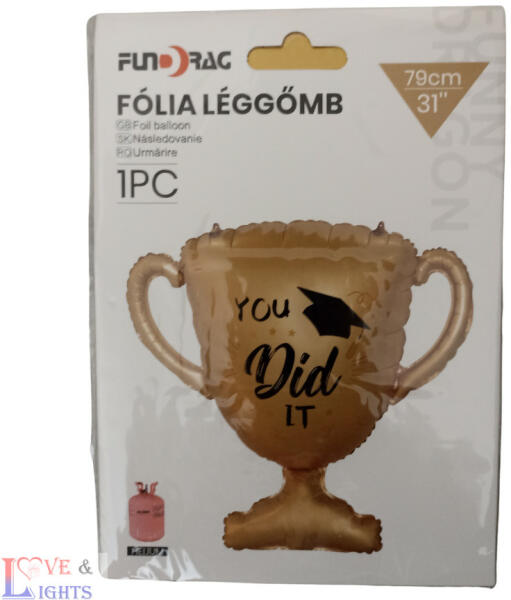 Megcsináltad / You did it! - feliratú ballagási / diplomaosztós fólia lufi Felfújható : levegővel vagy héliummal Mérete: 79 cm magas A csomag tartalma: 1 db lufi + 1 db szívószál a felfújáshoz + 2 db ragasztó pötty