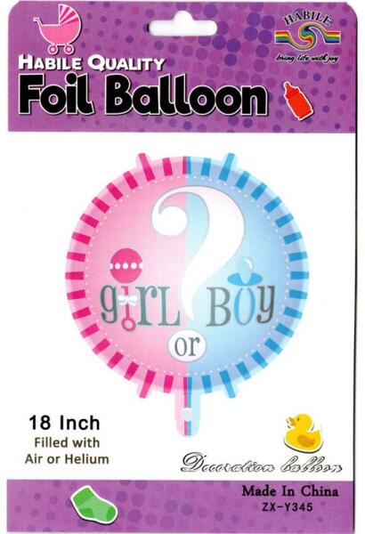 Fólia léggömb, Lány vagy fiú, 18 inch, 45cm Termékjellemzők: Anyaga: fólia Alkalom: Babaváró buli Figyelmeztetés: Figyelmeztetés: 8 év alatti gyerekek esetén fulladásveszélyes a felfújatlan lufi. ; 3 éves kor alatt nem ajánlott!; Figyelmeztetés: fulladásveszély, kis alkatrészek! Kinek ajánlott: Bárkinek