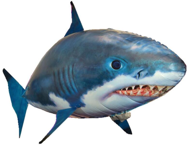 Air Swimmers Shark - Cápa Elérhető modellek : Air Swimmers Cápa Vezérlés: Infravörös vezérlés Hatótávolság: akár 12,192 m Hossza: 144,78 cm Az Air Swimmers teste kiváló minőségű, tartós nylonból készült. Nem alkalmas három év alatti gyermekek számára. A héliummal való feltöltés után az Air Swimmer kb. 30 napig marad felfújva Az elemeket a csomag nem tartalmazz