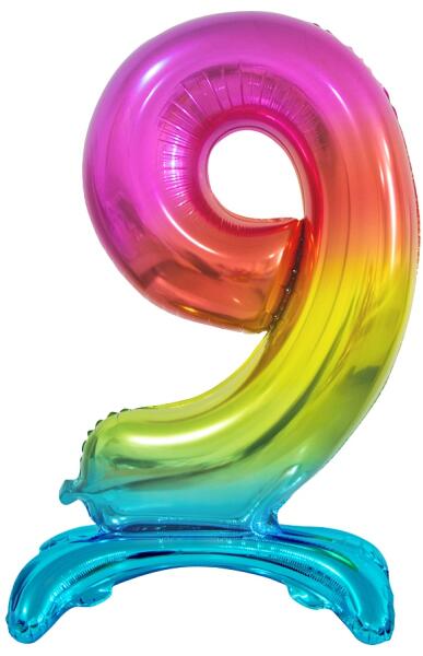 Talpas álló fólia lufi 9-es szivárvány 74 cm mennyiség: 1 db méret: 74 cm alkalmas levegővel történő felfújásra Színesítse a születésnapi ünnepséget szám formájú talpas álló fólia lufival . Kiváló minőségű, nem légáteresztő anyagból készült. Az álló fólia lufi előnye, hogy egyedül is megáll, bárhová helyezi. Levegővel felfújva pár hónapig is megtart